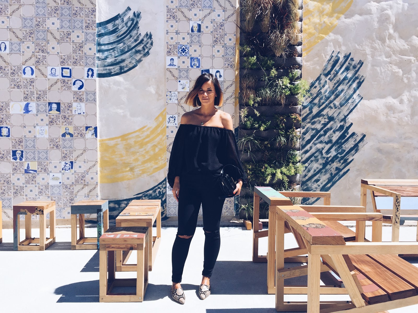 Este post podia chamar-se uniforme, podia chamar-se essenciais. Umas calças de cintura alta (que já não consigo largar), um top off shoulder e as mules (para lá de confortáveis), têm sido as primeiras escolhas quando não me apetece pensar muito ou elaborar.